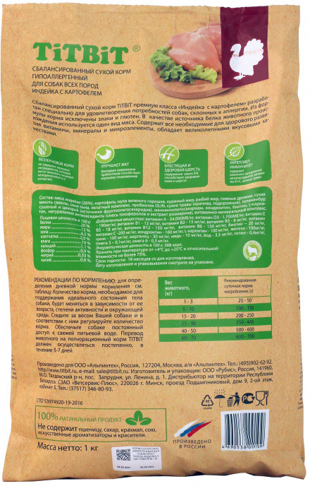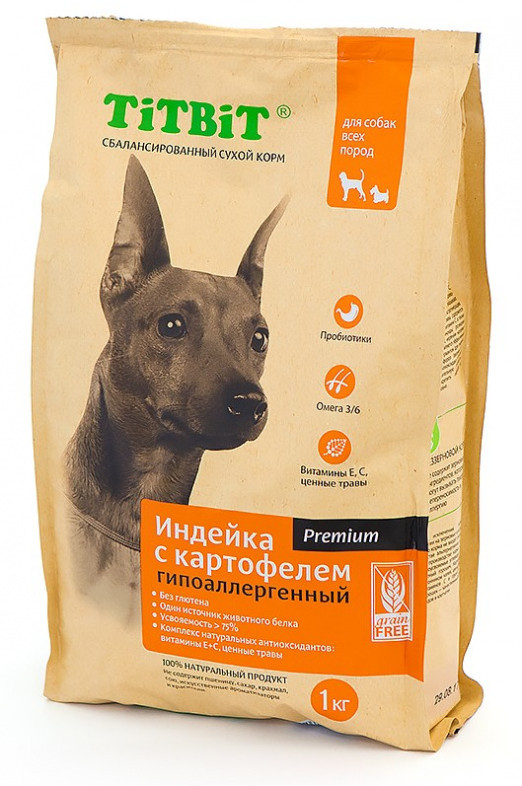 TiTBiT Корм для собак всех пород гипоаллергенный «Индейка с картофелем»
