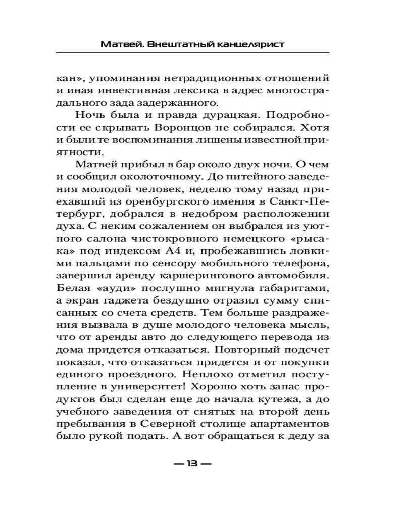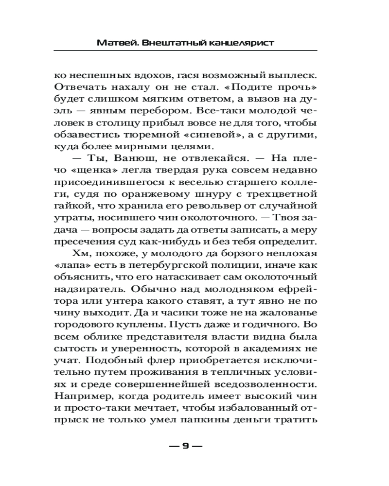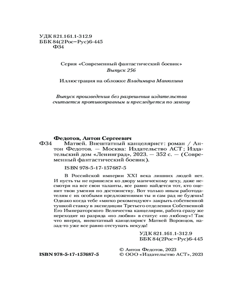 💳 Оплатить за товар можно при получении 🇰🇿 Есть бесплатная доставка по Казахстану 🎁 Копите бонусы с каждой покупки Серия: Современный фантастический боевик В Российской империи ХХI века лишних людей нет. И пусть ты не пришелся ко двору магическому цеху, даже несмотря на все свои таланты, все равно найдется тот, кто оценит твои умения по достоинству. Вот только иным работодателям с их особыми предложениями ты и сам рад не будешь! Однако когда тебе «мягко рекомендуют» закрыть собственной тушкой ставку в экспедиции Третьего отделения Собственной Его Императорского Величества канцелярии, работа сразу же переходит из разряда «по любви» в статус «по любому»! Так что вперед, внештатный канцелярист Матвей Воронцов, назад-то уже все равно отступать некуда! |
