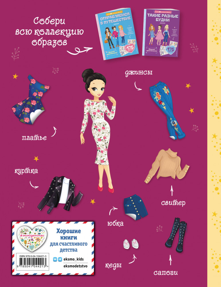 💳 Оплатить за товар можно при получении 🇰🇿 Есть бесплатная доставка по Казахстану от 1 дня 🎁 Копите бонусы с каждой покупки Серия: Модные приключения с наклейками Добро пожаловать в мир моды и красоты! Пора начинать творить! Не упускай возможность раскрыть свои творческие таланты! Перед тобой лукбук с красочными разворотами и моделями, готовыми стать определением «красота» в твоем понимании. А 6 страниц наклеек помогут тебе в этом интересном деле! Создавай самые дерзкие и яркие сочетания, готовь свой собственный лук. Ты сама можешь стать дизайнером! От тебя лишь требуется твое желание. |