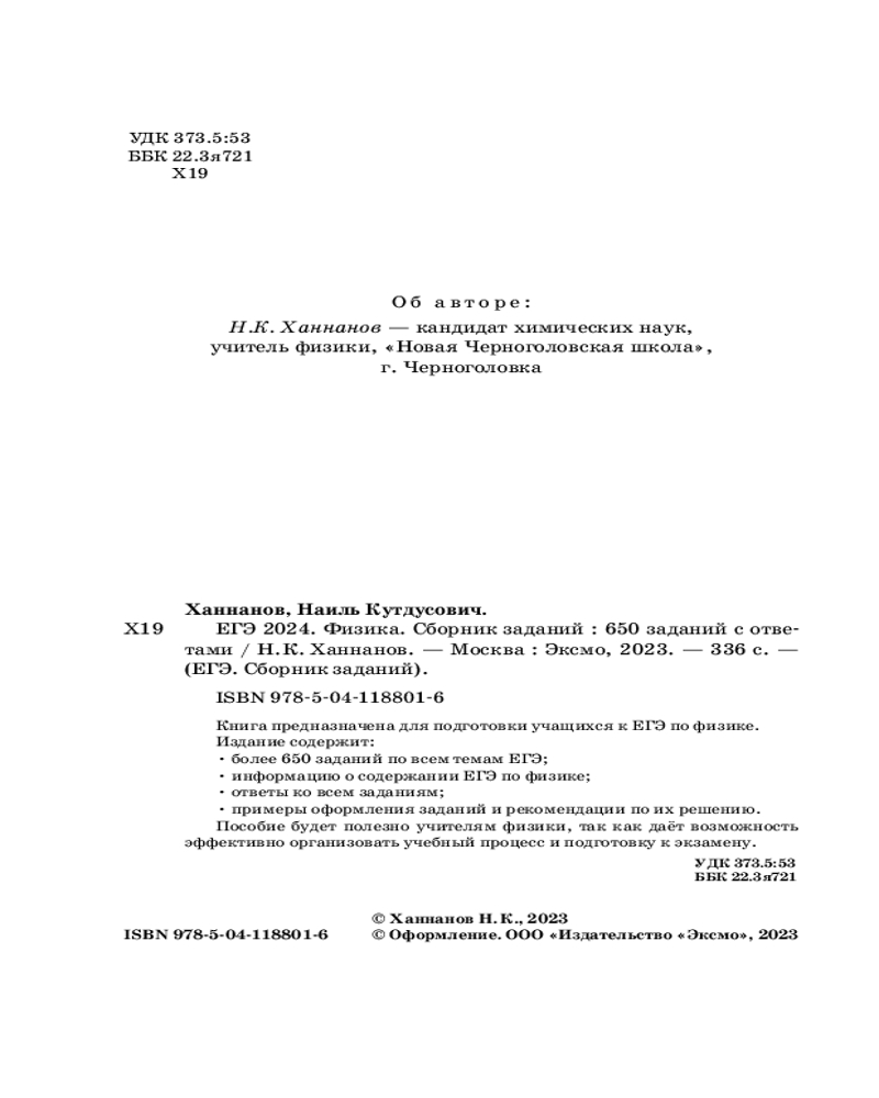ЕГЭ-2024. Физика. Сборник заданий. 650 заданий с ответамиВ данный момент этот товар отсутствует в продаже. Возможно, у нас найдется аналогичный или похожий товар здесь. Серия: ЕГЭ. Сборник заданий (обложка) Книга предназначена для подготовки учащихся к ЕГЭ по физике. Издание содержит более 650 заданий по всем темам, проверяемым на ЕГЭ, информацию о содержании экзамена и ответы ко всем заданиям. Приводятся примеры оформления заданий, требующих развернутого ответа, и рекомендации по их решению. |