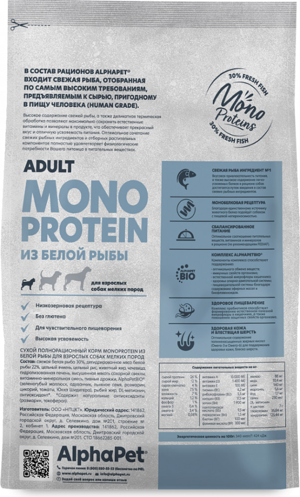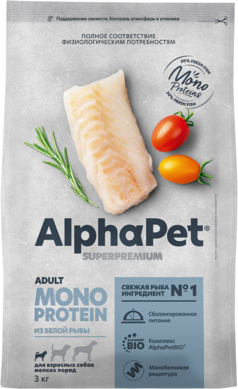 AlphaPet Корм для взрослых собак мелких пород из белой рыбы