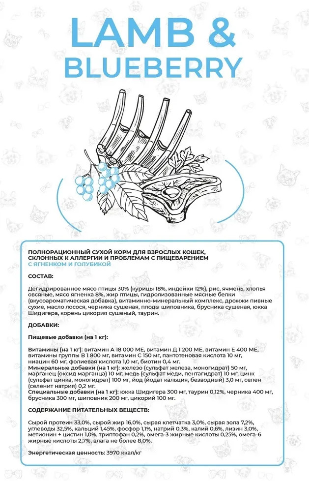 Best Dinner Корм для кошек с ягненком и голубикой-20% +123