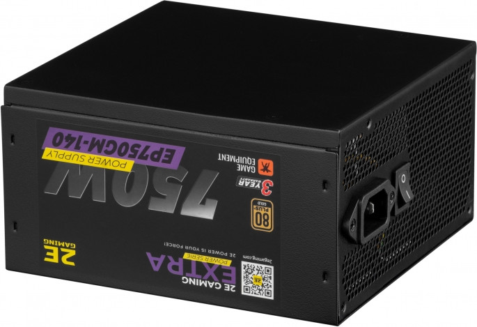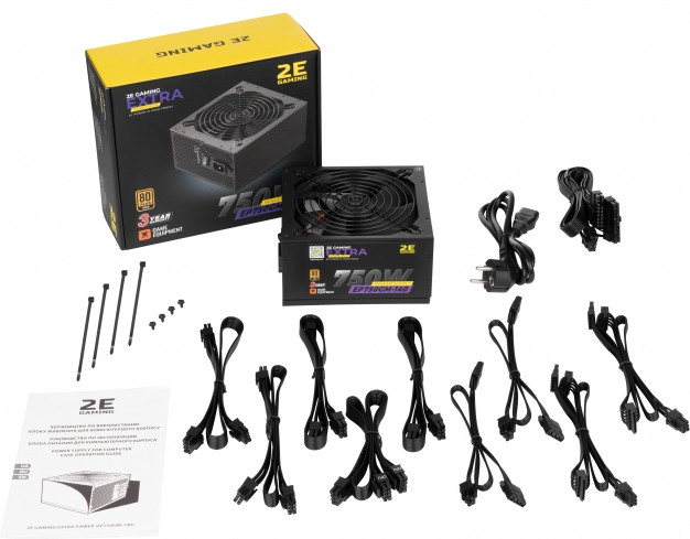 Модульный блок питания 2E Gaming Extra Power (750W) для прогрессивных компьютерных систем. Современная схемотехника на основе DC-DC преобразователей и мощная +12B линия на выходе, показатель КПД >90%, сертификат 80 Plus Gold, надежная компонентная база и использование устойчивых к перегревам тайваньских конденсаторов гарантируют стабильное питание составляющих ПК и экономию электроэнергии в процессе эксплуатации.
