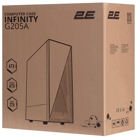 Типоразмер корпуса Mid Tower — это совместимость с материнскими платами ATX, Micro ATX, Mini ITX. Корпус без блока питания. Пользователю предоставляется возможность самостоятельного выбора источника питания, в зависимости от уровня системы, который устанавливается в нижней части корпуса. Корпус 2E Infinity (G205А) подходит для сборки домашнего ПК и мощной игровой системы, лаконично впишется и дополнит современный интерьер. Максимально возможная для установки длина видеокарты — 345 мм. Корпус предоставляет возможности монтажа достаточного количества накопителей, в наличии 7 слотов расширения. Предусмотрена установка до 6-ти вентиляторов (в комплекте установлено 3 вентилятора) и охлаждения для процессора высотой до 160 мм.