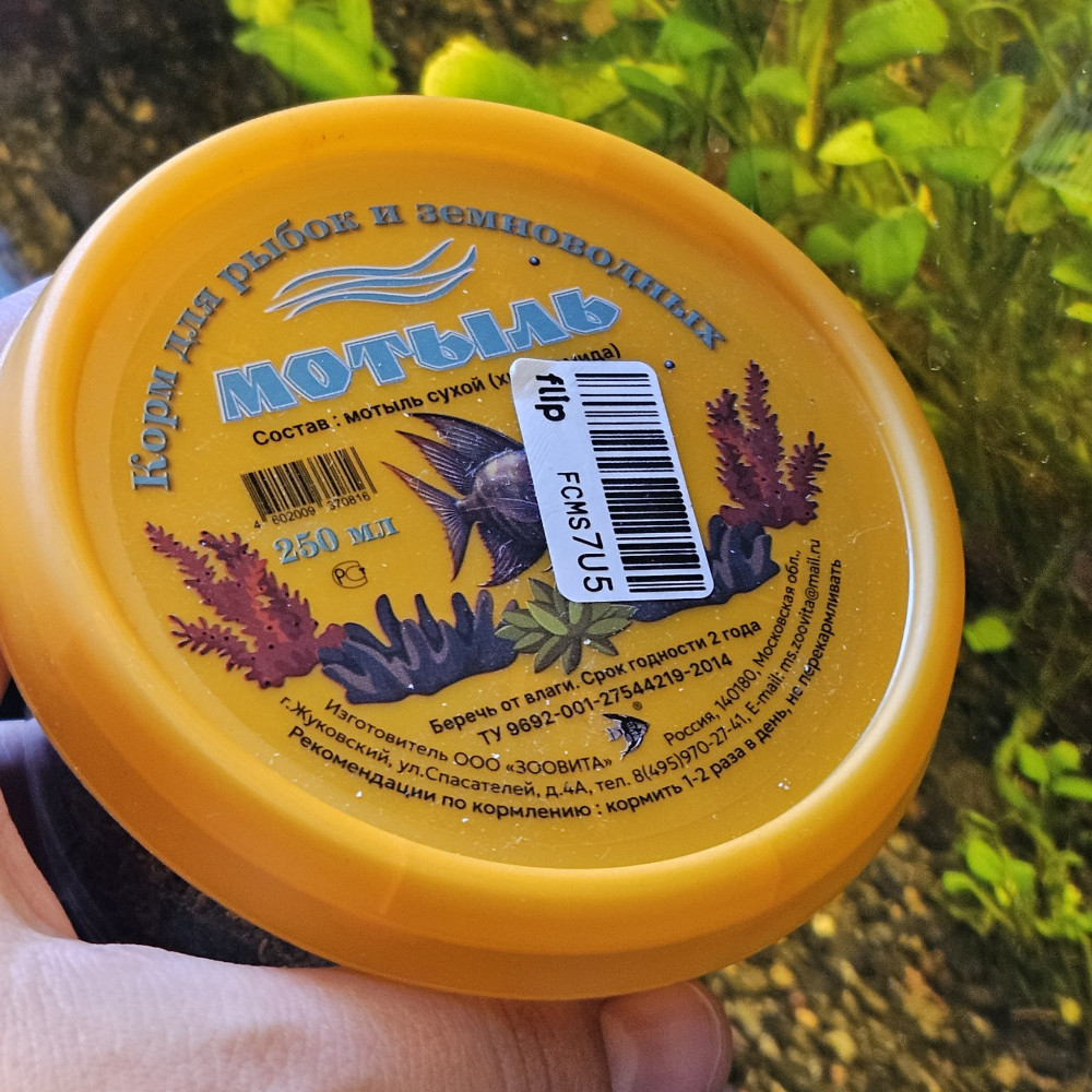Отличный мотыль. Рыбки, улитки, креветки, все отлично едят. Теперь новая баночка)) Спасибо