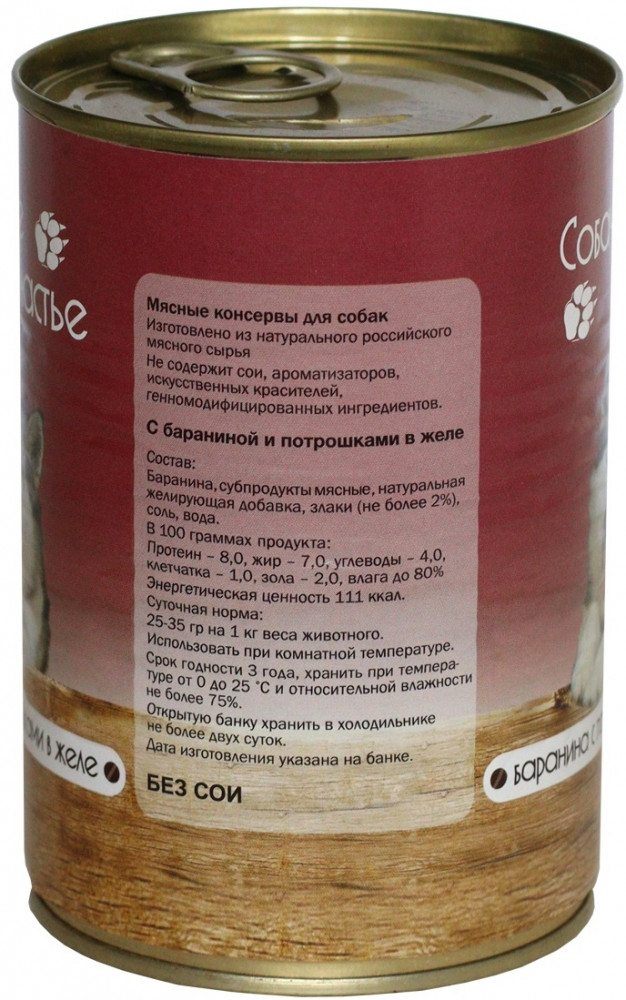 Собачье счастье Консервы для собак «Баранина с потрошками в желе»