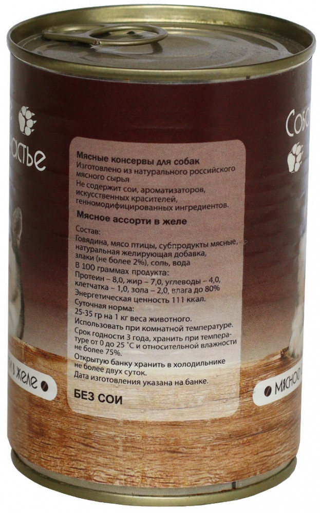 Собачье счастье Консервы для собак «Мясное ассорти в желе»