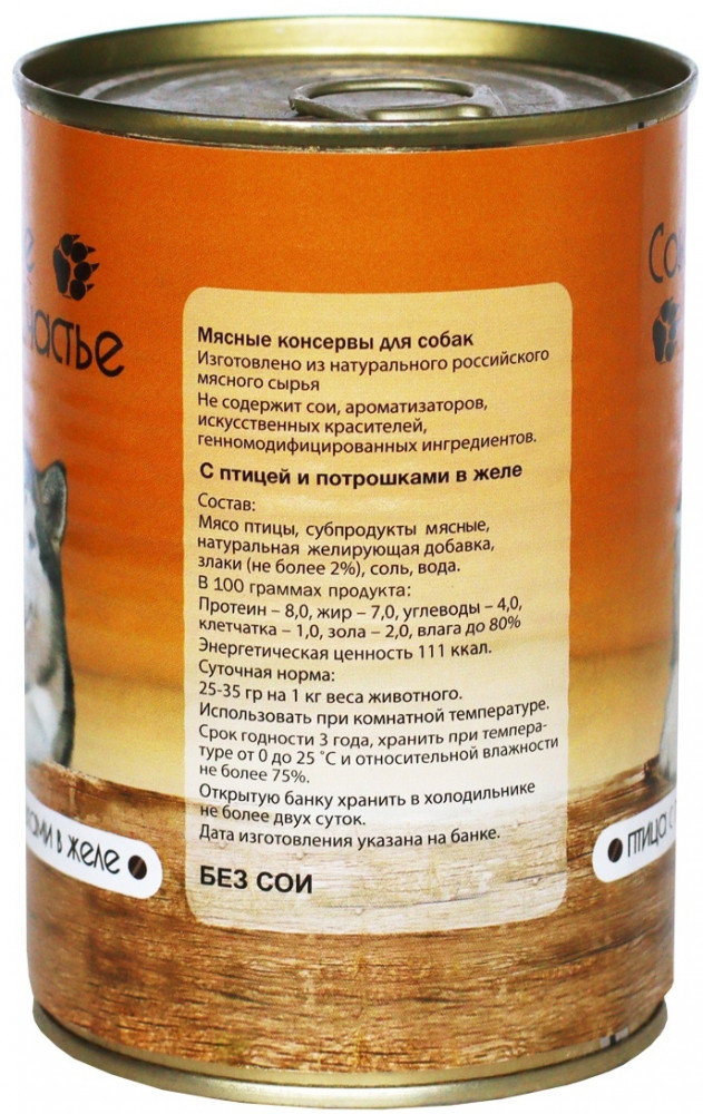 Собачье счастье Консервы для собак «Птица с потрошками в желе»