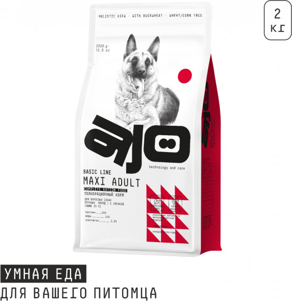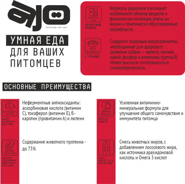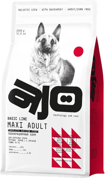 AJO Корм для взрослых собак крупных пород с гречкой-25% +94