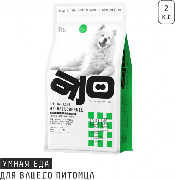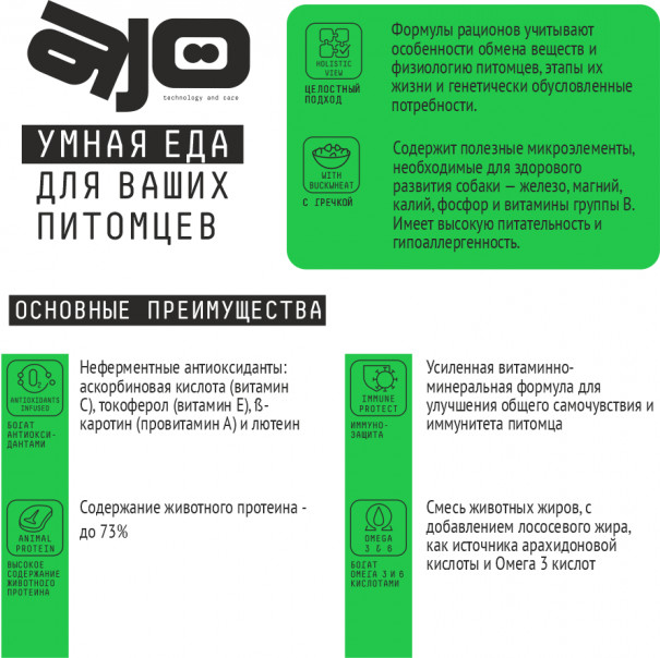 AJO Корм для собак средних и крупных пород, склонных к аллергии со вкусом оленины+140