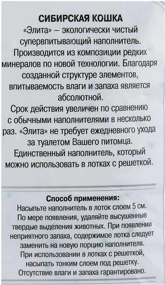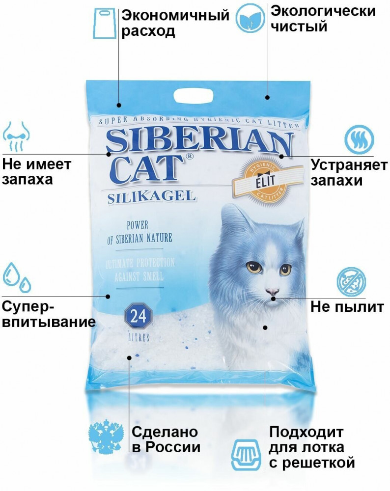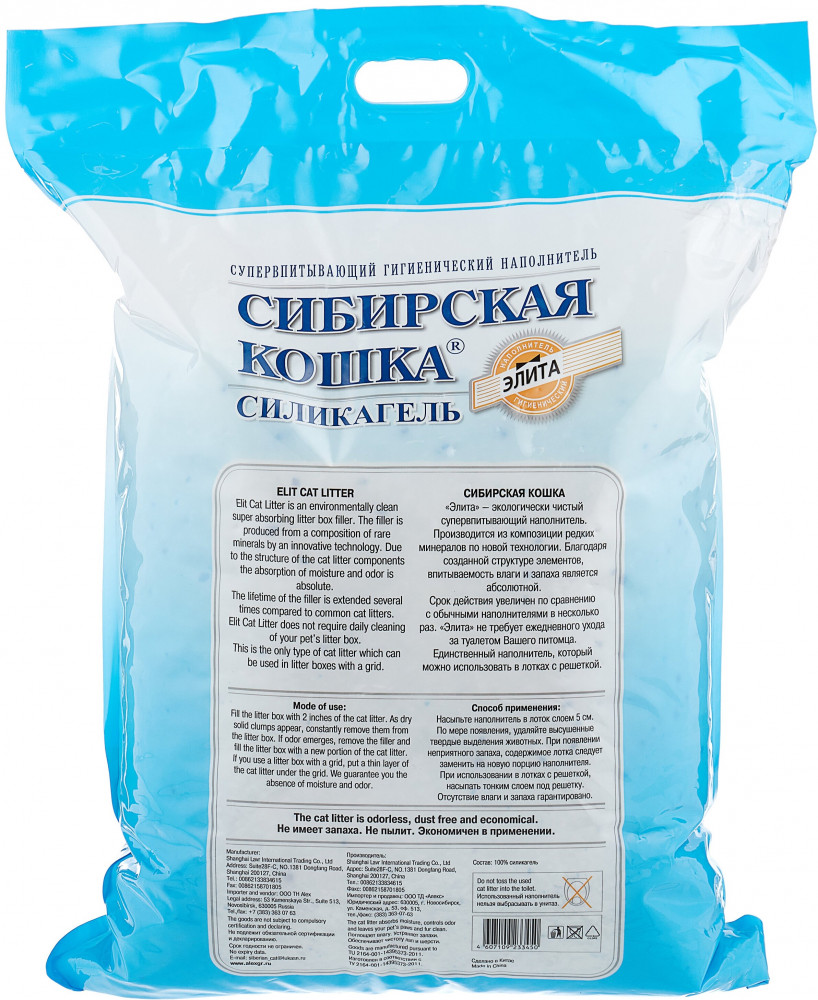 Сибирская Кошка Наполнитель для кошачьего туалета силикагелевый «Элита»