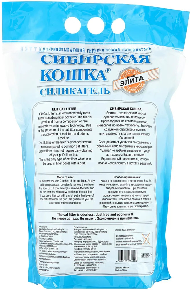 Сибирская Кошка Наполнитель для кошачьего туалета силикагелевый «Элита»