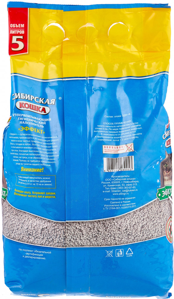 Сибирская Кошка Наполнитель для кошачьего туалета «Эффект»