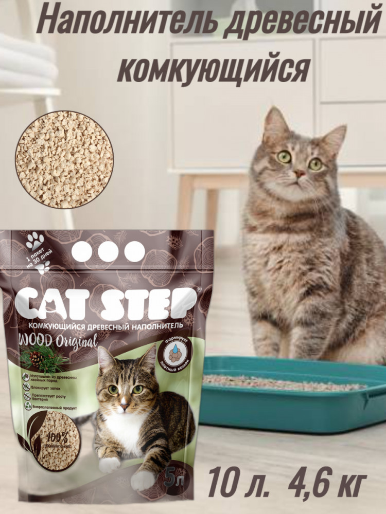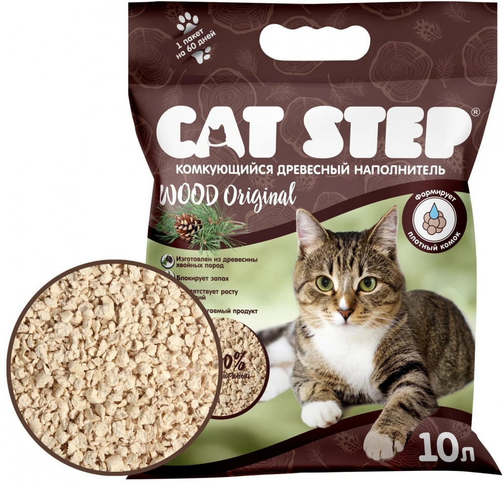 Cat Step Наполнитель для кошачьего туалета растительный комкующийся «Original»-20% +78