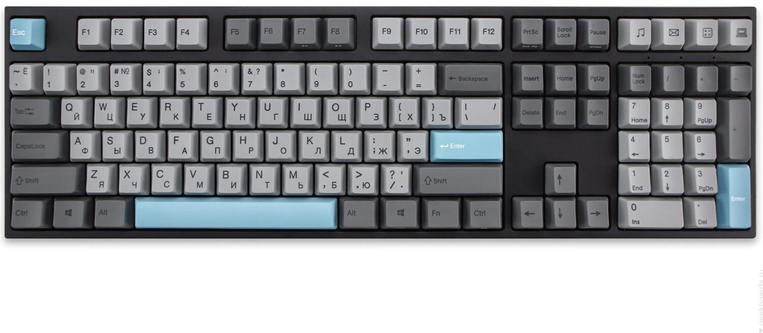 Клавиши V-Silk имеют гладкую поверхность и гораздо меньше притягивают грязь, оставаясь при этом столь же приятными на ощупь, но уже по-новому. Клавиши изготовлены из высокопрочного PBT-пластика с применением dye-sublimation технологии с выгравированными символами по бокам. Благодаря использованию dye-sub символы никогда не стираются и не чувствуются при печати, а качественный PBT-пластик гарантирует надежность и долговечность.