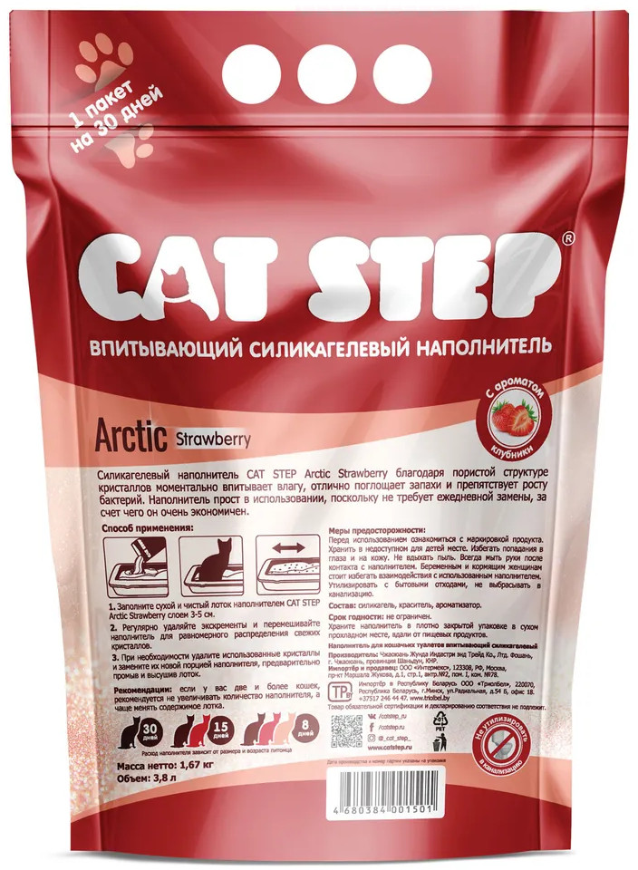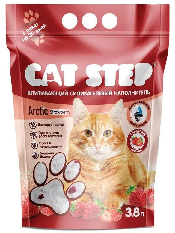 Cat Step Наполнитель для кошачьего туалета впитывающий силикагелевый «Strawberry»-25% +132