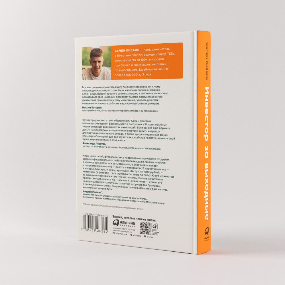 💳 Оплатить за товар можно при получении 🇰🇿 Есть бесплатная доставка по Казахстану от 1 дня 🎁 Копите бонусы с каждой покупки Перед вами — второе, обновленное издание книги Семёна Кибало «Инвестор за выходные». К 30 годам автор добился полной финансовой независимости благодаря пассивному инвестированию, а его книга уже помогла тысячам людей разобраться, как инвестировать на российском рынке, грамотно собрать инвестпортфель и узнать об опасностях, которые подстерегают пассивного инвестора. Семён Кибало утверждает, что для первого шага достаточно 1000 рублей, и предлагает читателям убедиться в этом самостоятельно. |
