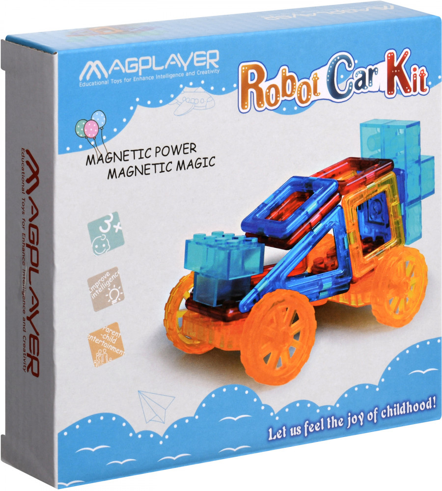 💳 Оплатить за товар можно при получении 🇰🇿 Есть бесплатная доставка по Казахстану от 1 дня 🎁 Копите бонусы с каждой покупки Конструктор Magplayer состоит из 32 разноцветных элементов, среди которых 8 магнитных элемнтов, другие — из пластика. В комплект входит платформа на колесах, с помощью которой можно построить интересный автомобиль. Рекомендуемый возраст: 3+ |