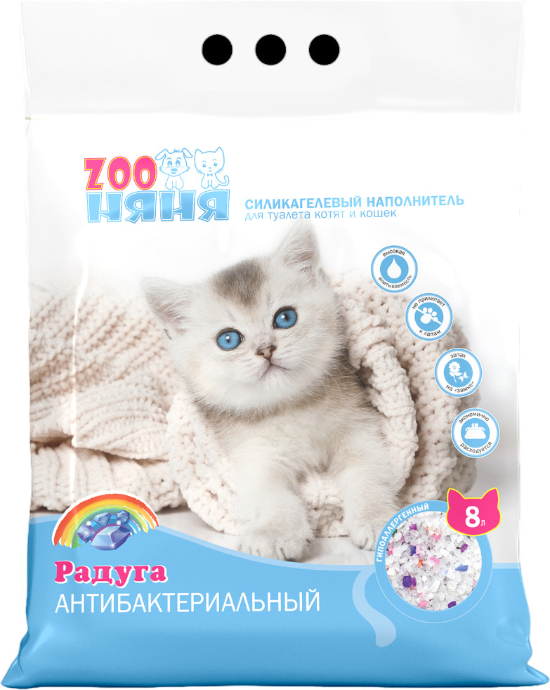 ZOO Няня Наполнитель для кошачьего туалета силикагелевый «Радуга»