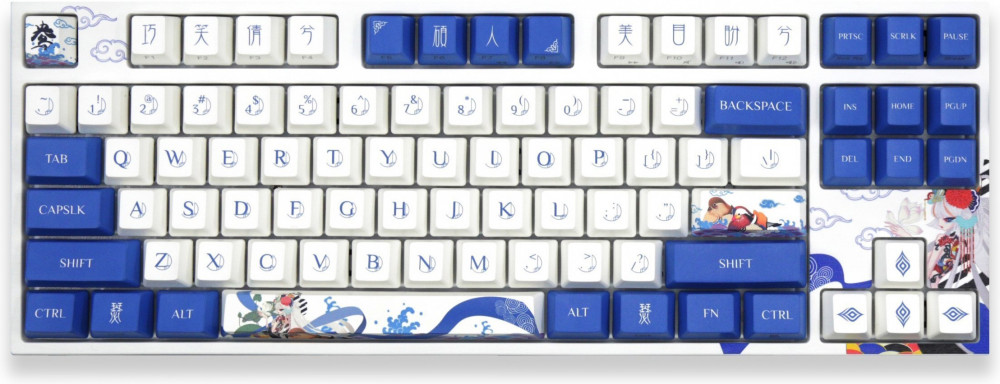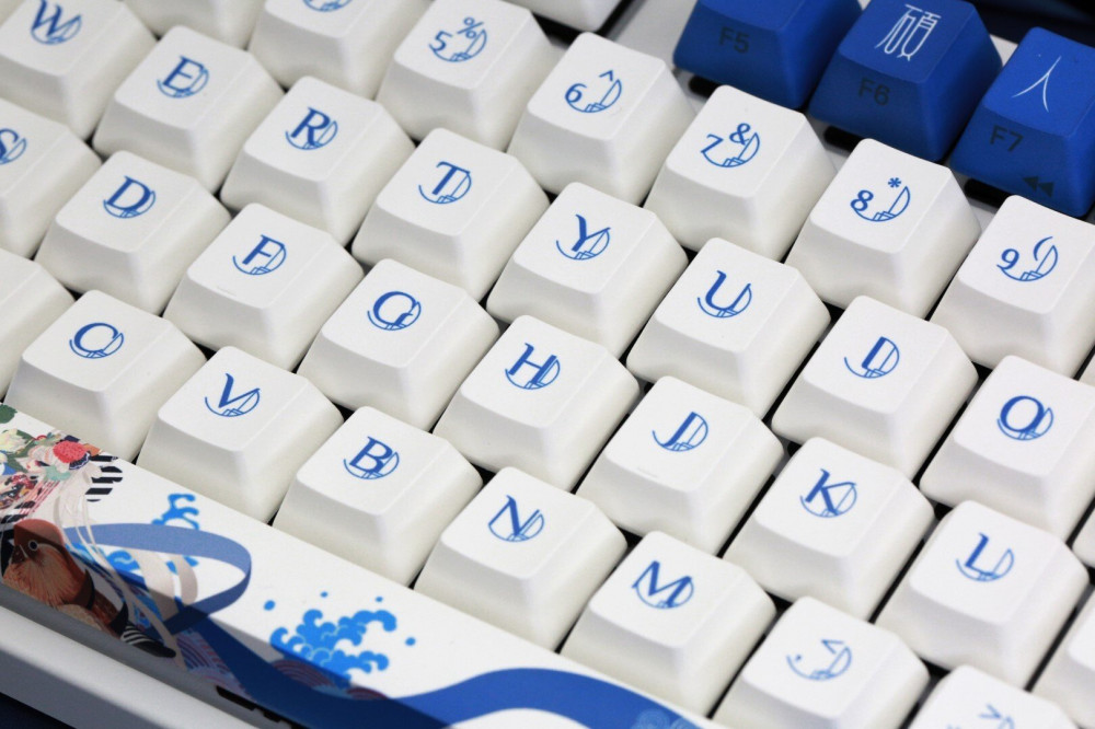 Колпачки изготавливаются из прочного пластика PBT, что гарантирует надежность и долговечность. Для гравировки символов на боках применяют технологию компьютерной печати dye-sublimation. Печать на клавиатуре возможна, благодаря текстурированному верху клавиш. Использование dye-sub позволяет символам никогда не стираться и никак не ощущаться при печати.