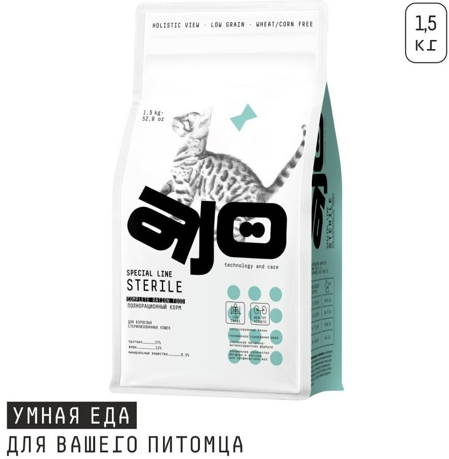 AJO Корм для активных стерилизованных кошек с высоким содержанием белка