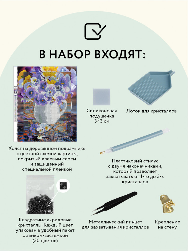 Три совы Мозаика алмазная «Анютины глазки»-20% +133