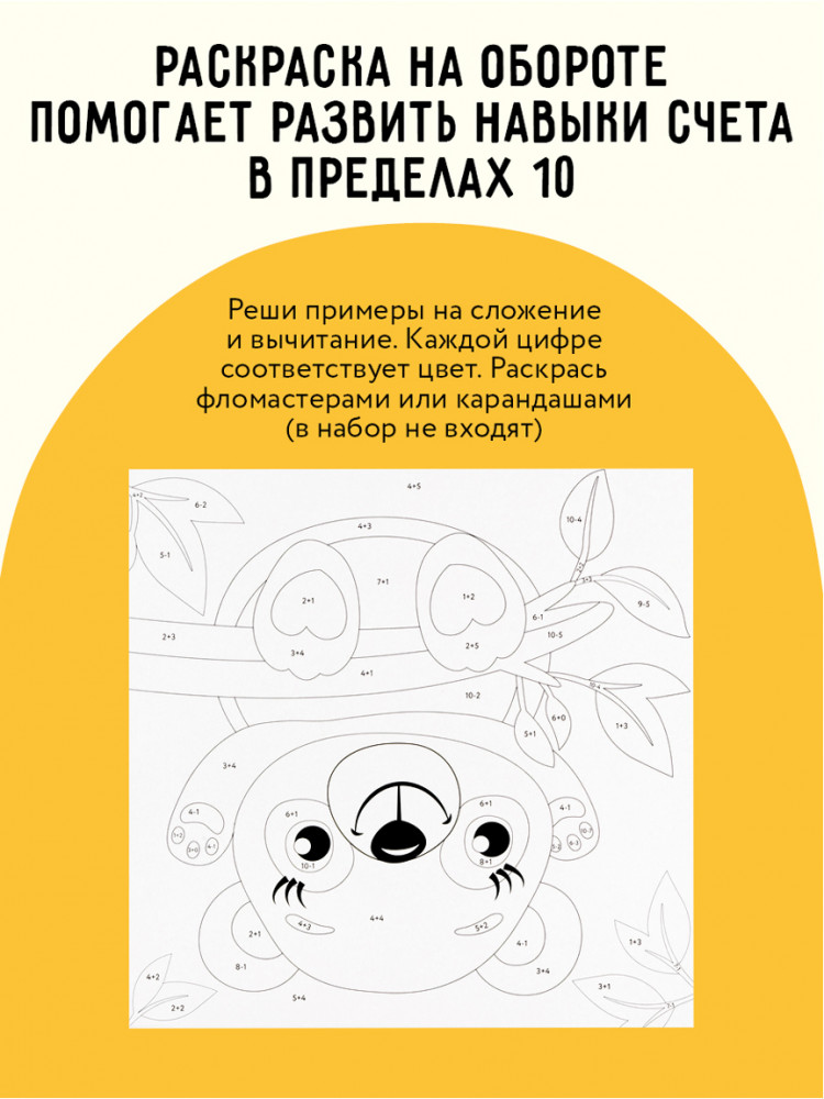 На оборотной стороне аппликации расположена раскраска по номерам. Решай примеры на сложение и вычитание. Каждой цифре соответствует цвет. Раскрась фломастерами или карандашами. Подобное хобби позволит провести досуг в семейном кругу не только приятно, но и с пользой!