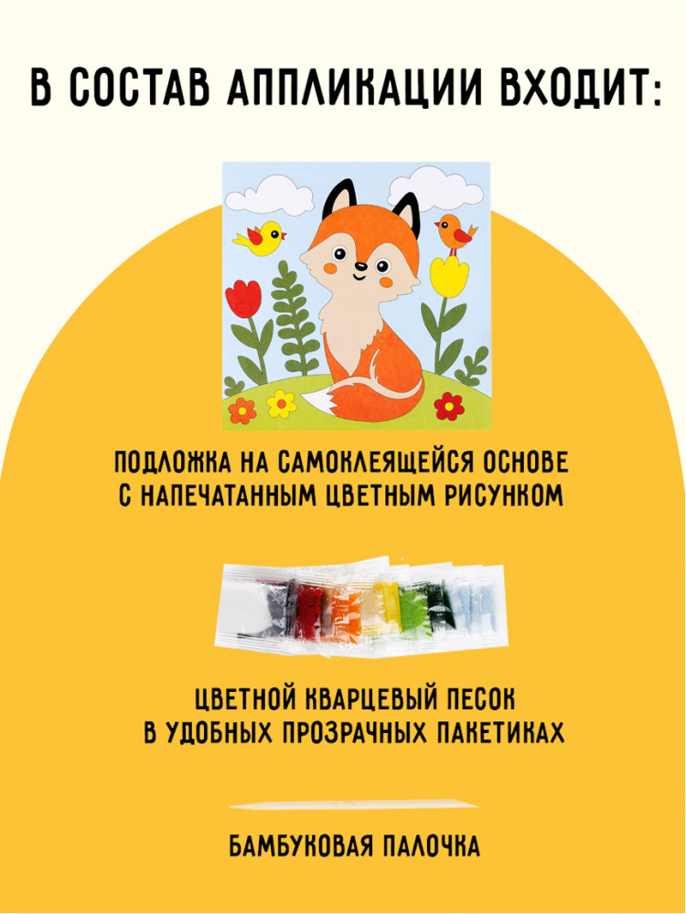 В комплекте: • подложка 20×20 см на самоклеящейся основе с напечатанным цветным рисунком;