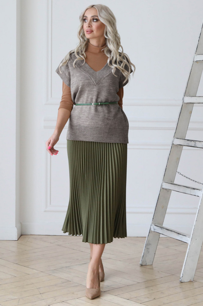 Цвет замечательный, сидит свободно и вязка выполнена со вкусом.
