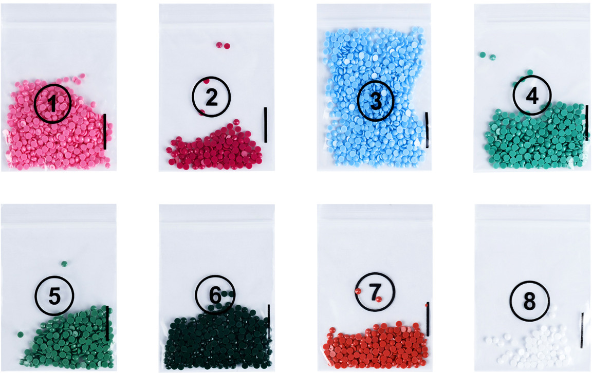 Выполнение работы не требует специальных навыков. Круглые кристаллы выкладываются поверх изображения со схемой на уже нанесенный клеевой слой.