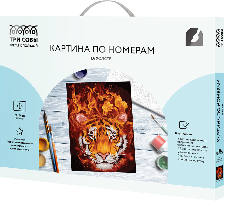 • холст на деревянном подрамнике 30×40 с нанесенным контуром, пронумерованный в соответствии с номерами красок. Контур под раскрашивание нанесен в том числе и на торцы подрамника, что позволяет разместить готовую работу на стене не обрамляя в багет или раму. Технология точной разбивки сюжета картины на разные цветовые оттенки гарантируют правильность исполнения полотна;