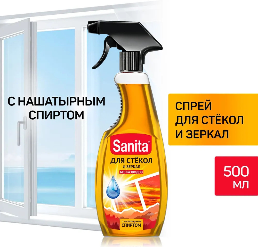 Sanita Спрей для стекол с нашатырным спиртом-20% +14 качество эффективность очистки удобство использования