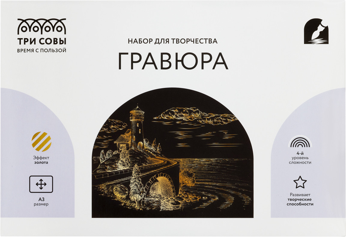 Три совы Гравюра с эффектом золота «Дом с маяком»-25% +14