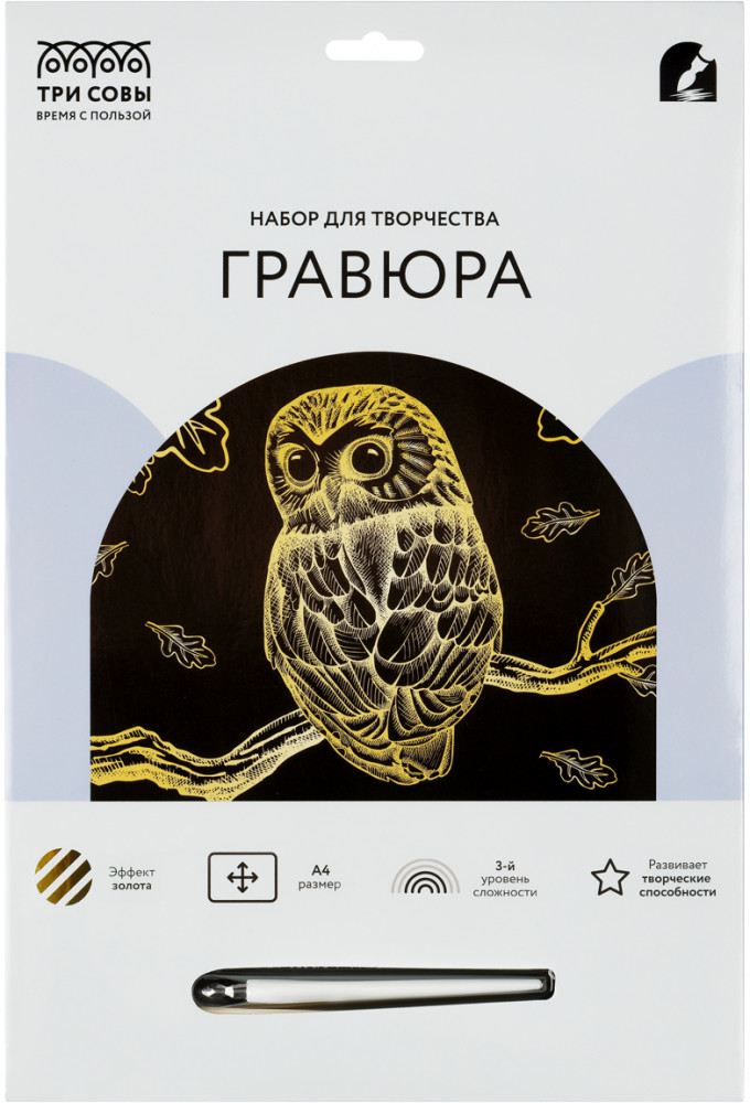 Три совы Гравюра с эффектом золота «Сова»-20% +8