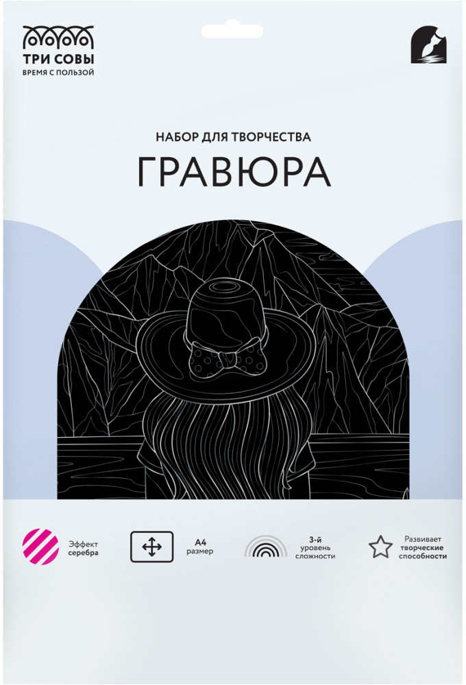 Гравюра — это увлекательный, популярный, а главное несложный вид творчества, который будет интересен не только детям, но и взрослым. В набор входит основа с эффектом серебра формата А4, штихель и крепление на стену. |