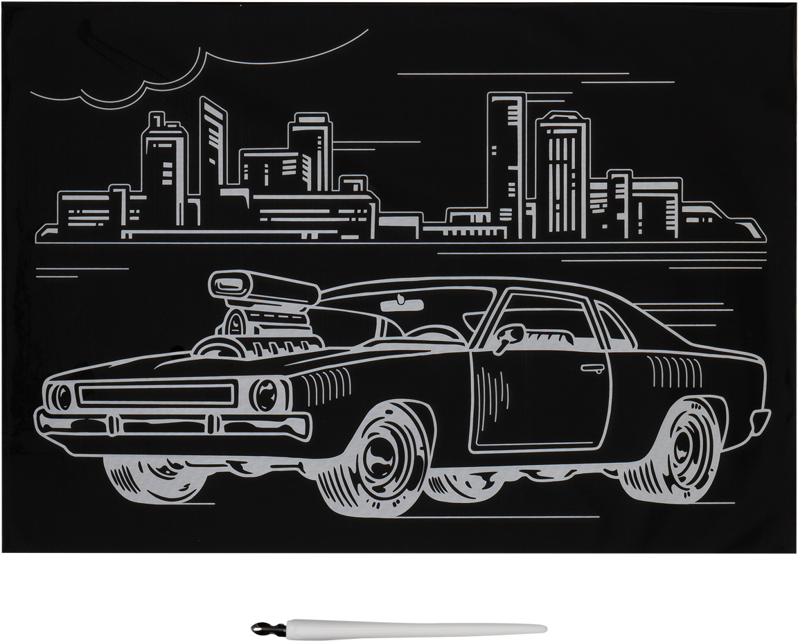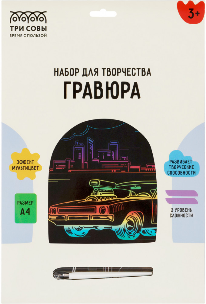 Три совы Гравюра с мультицветной основой «Городской гонщик»