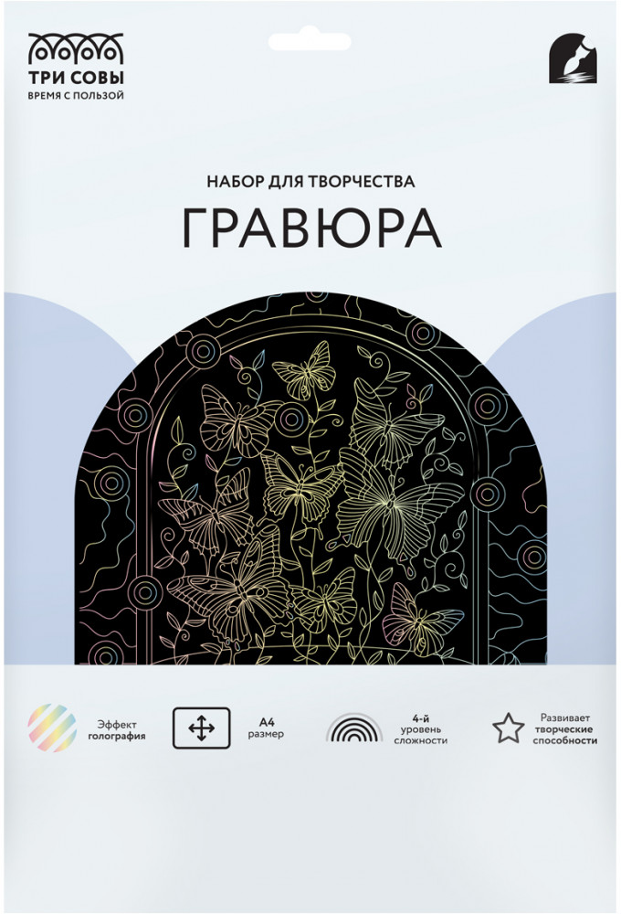 Три совы Гравюра с голографическим эффектом «Бабочки»+27