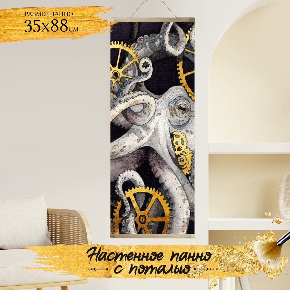 Флюид Картина-панно по номерам с поталью «Осьминог-стимпанк»-20%