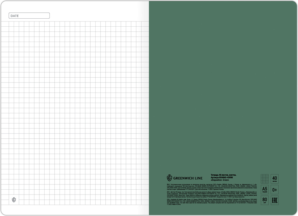 Greenwich Line Тетрадь «Disposition. Green»+30