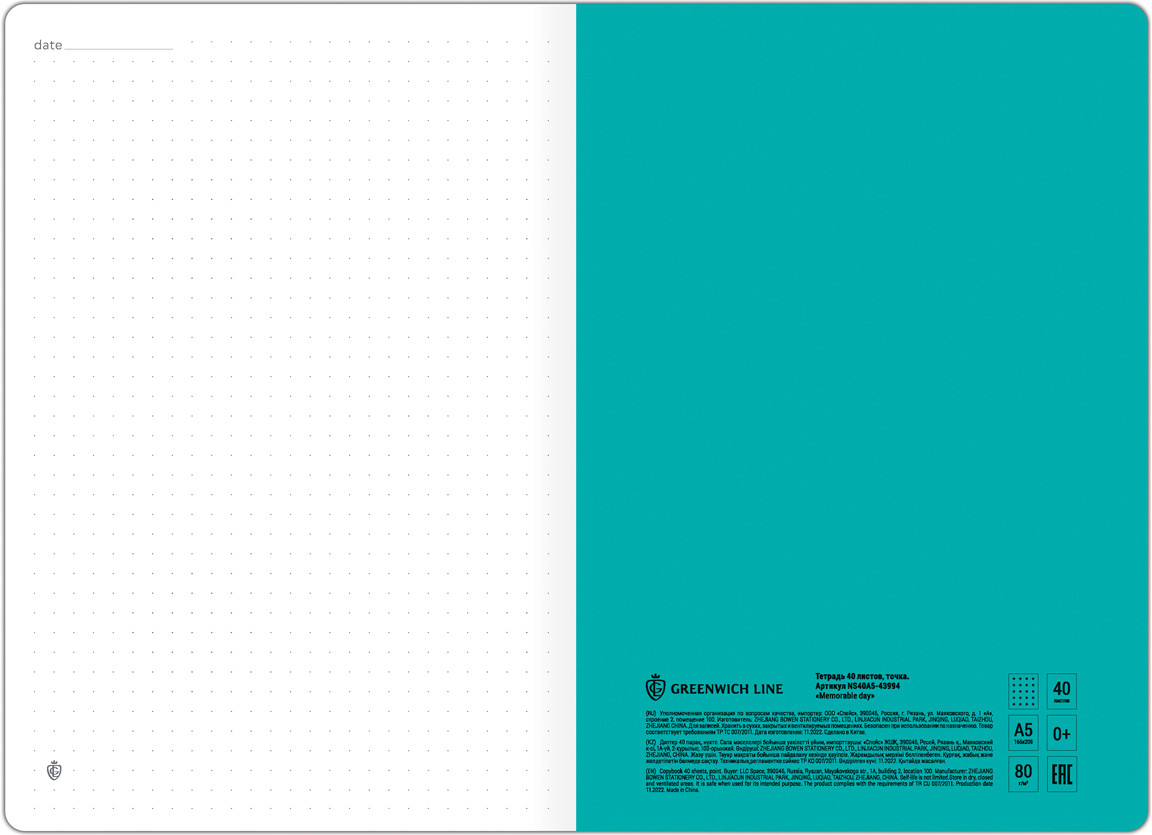 Greenwich Line Тетрадь «Memorable day»-20% +8 тактильная обложка плотная бумага красивое оформление высокое качество