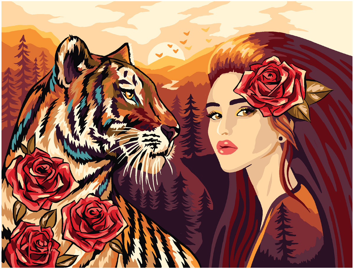 Картина по номерам «Девушка с тигром» - Фото 1