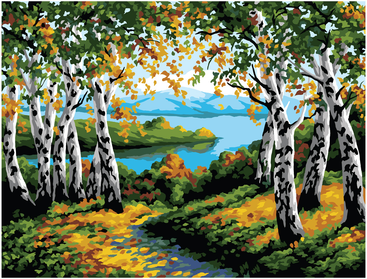• плотный картон с тиснением под холст размером 30×40 см с нанесенным контуром, пронумерованный в соответствии с номерами красок;