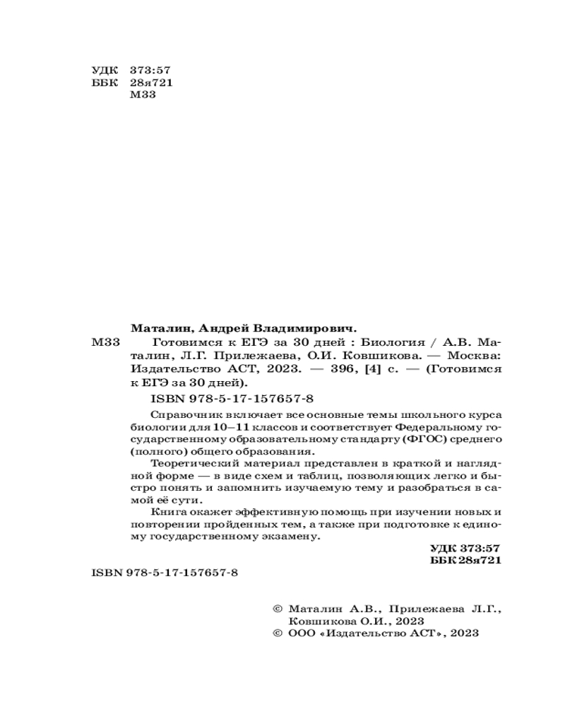Готовимся к ЕГЭ за 30 дней. БиологияЛариса Георгиевна Прилежаева, Андрей Владимирович Маталин +31