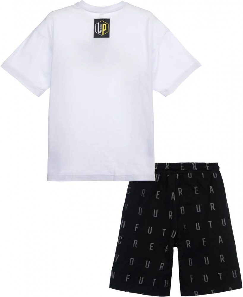 Комплект: футболка и шорты из качественного эластичного и приятного на ощупь трикотажа. Посадка comfort fit — свободный крой. На шортах эластичный пояс со шнурком. Высокое содержание хлопка 95%. Благодаря наличию эластана в составе ткани изделие держит форму и меньше мнется.
