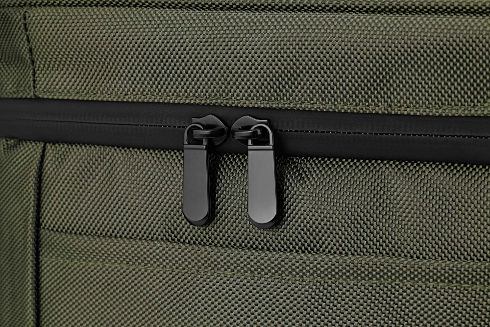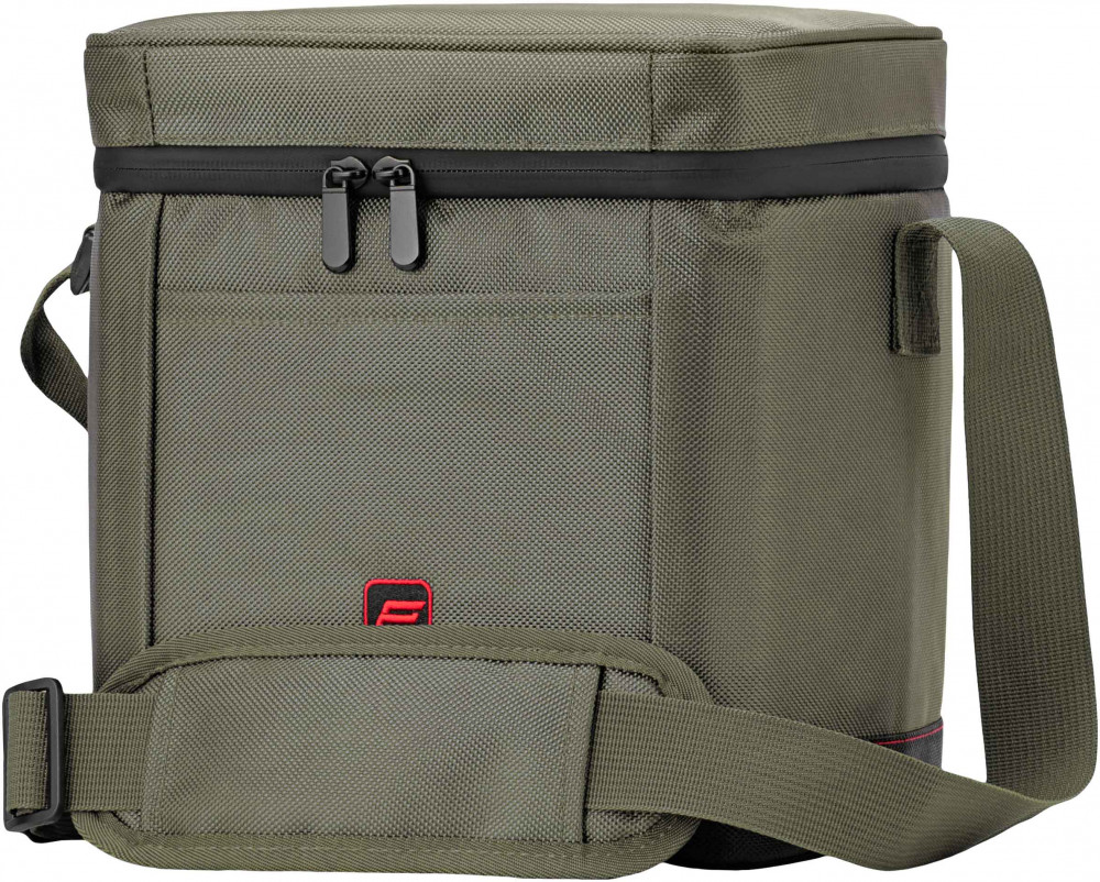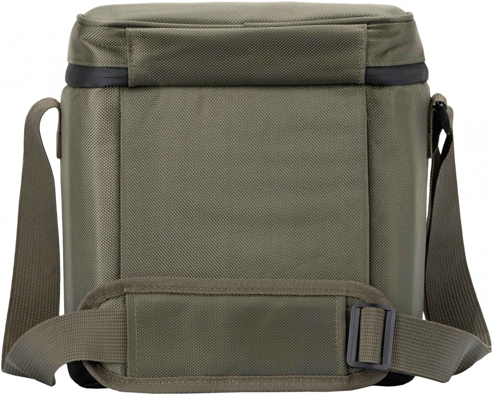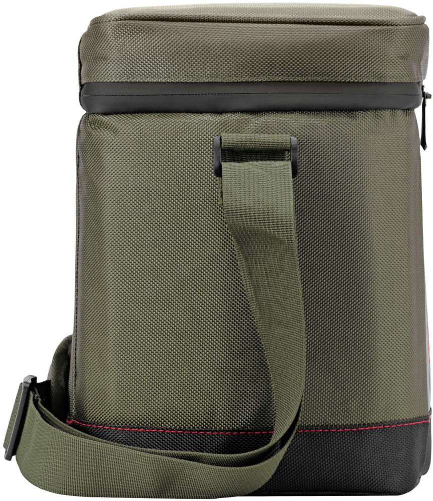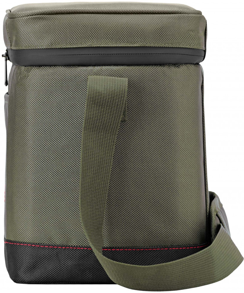 Внутри сумка покрыта особым металлизированным теплоотражающим слоем со специальной поверхностью для улучшения свойств материала сохранять температуру во внутреннем объеме постоянной более длительное время. Изготовлена из водоотталкивающего полиэстера. Предусмотрен плечевой регулируемый ремешок для переноски и маленький карман для безделушек. Все карабины, петли и замки молний — металлические.