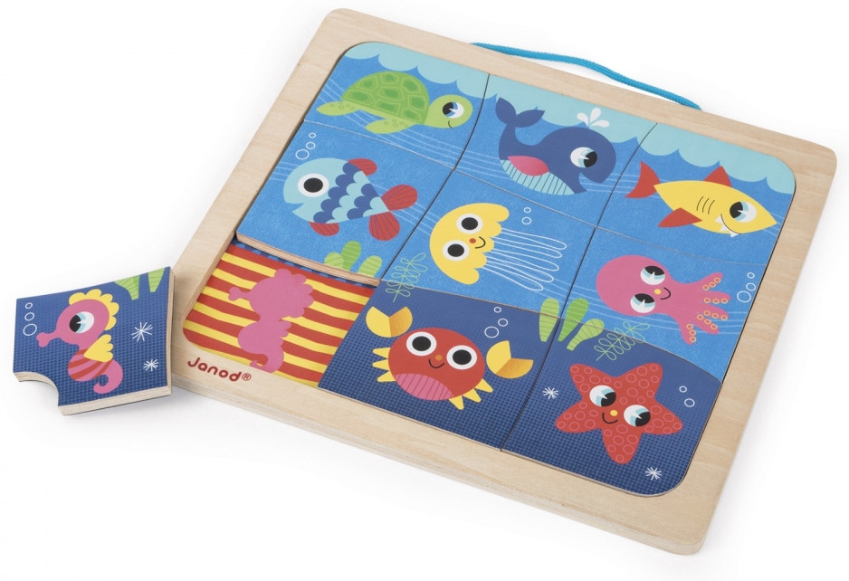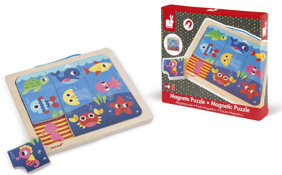Janod Пазл магнитный «Рыбки»В данный момент этот товар отсутствует в продаже. Возможно, у нас найдется аналогичный или похожий товар здесь. Замечательный магнитный пазл для малышей с 18 месяцев. В основе доски рисунок разделен на сектора с изображением контуров морского жителя. Среди магнитных элементов детки должны найти подходящую рыбку по форме контура. Собранный пазл можно взять за ручку и принести показать родителям, а потом повесить как картину в детской комнате. Все элементы произведены из натурального дерева, оно идеально обработанное и приятное к коже рук. |