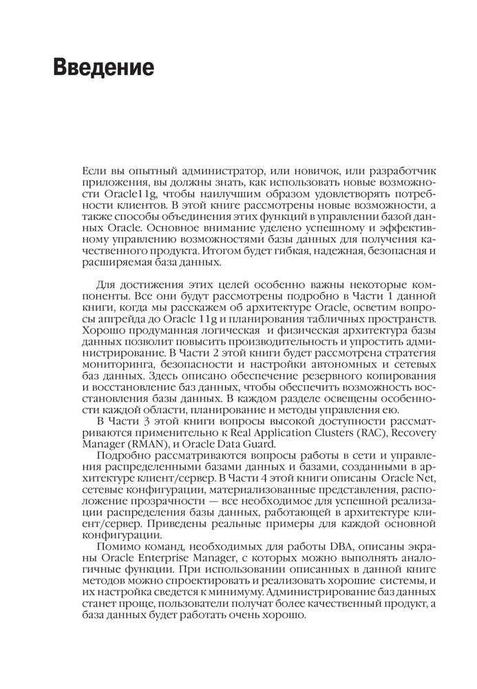Oracle Database 11g. Настольная книга администратора баз данныхВ данный момент этот товар отсутствует в продаже. Возможно, у нас найдется аналогичный или похожий товар здесь. Это уникальное руководство издательства Oracle Press поможет поддерживать высокопроизводительную корпоративную базу данных Oracle. Вы научитесь инсталлировать Oracle Database 11g или выполнять upgrade с одной из более ранних версий, чтобы воспользоваться всеми возможностями нового и усовершенствованного управления, масштабируемости, доступности и безопасности. В пособии, написанном экспертами по Oracle, рассматриваются технологии Automatic Undo Management, Oracle Real Application Clusters, Oracle Recovery Manager и многое другое. |