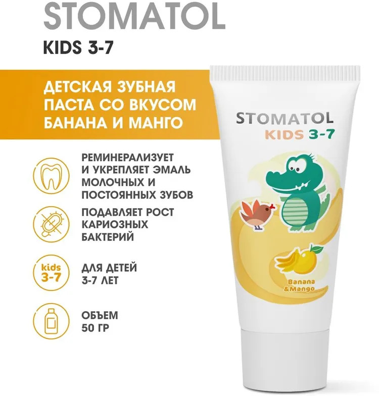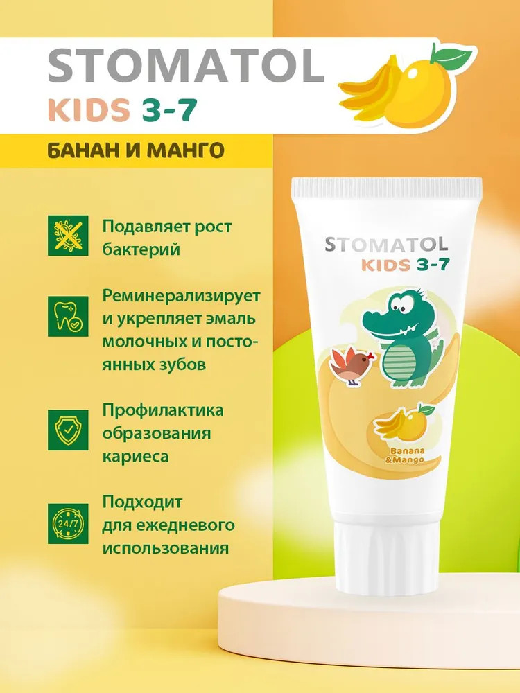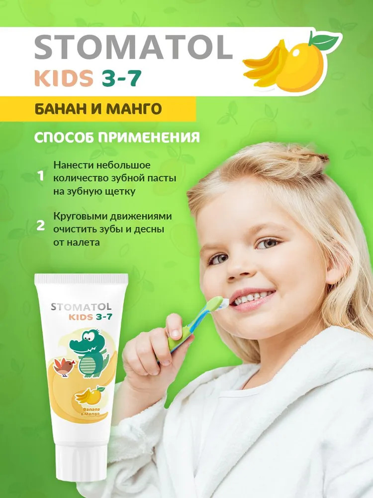 Stomatol Зубная паста детская со вкусом банана и манго «Kids»