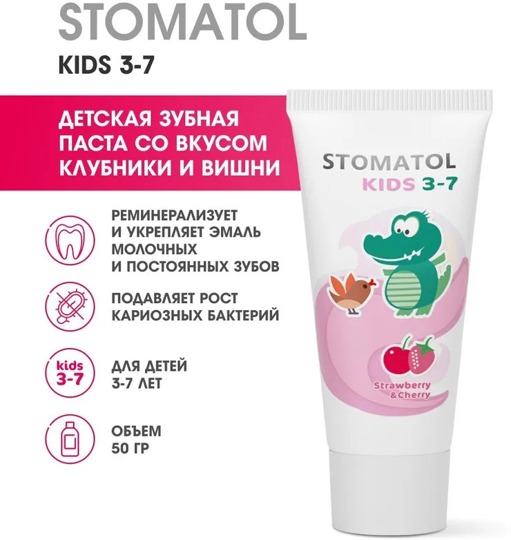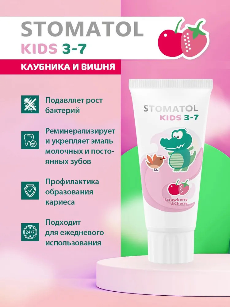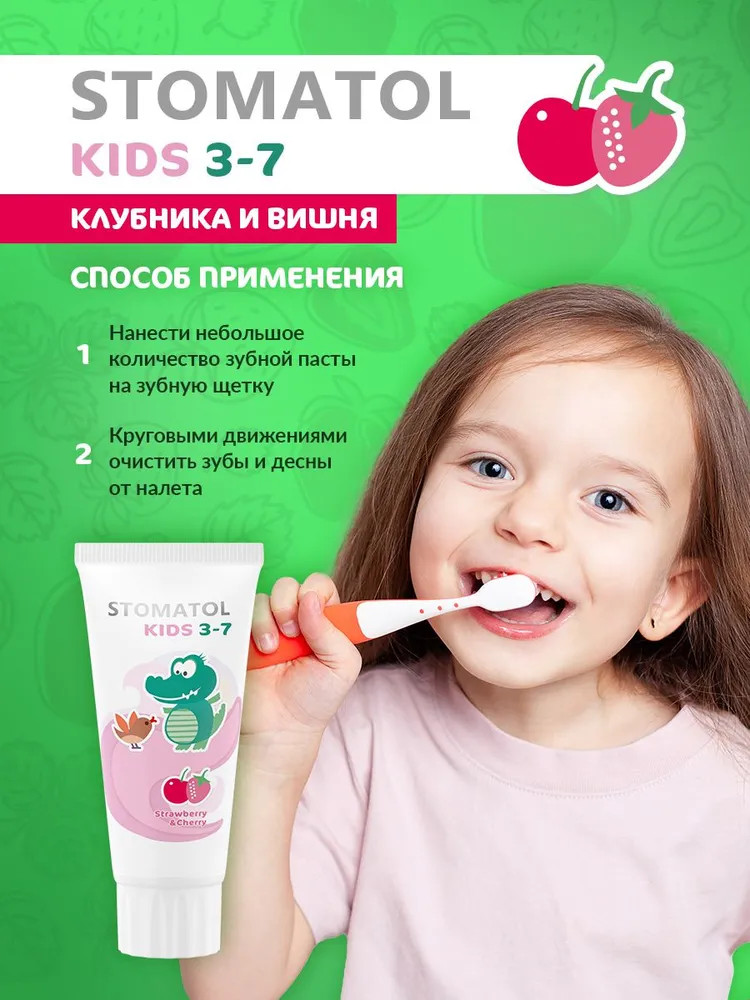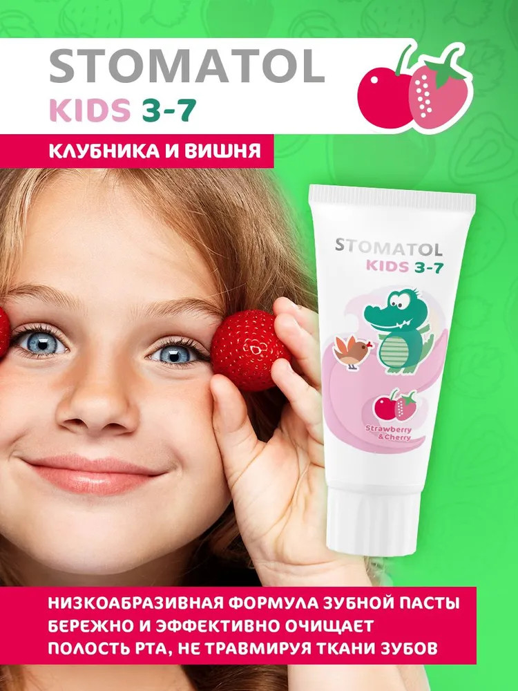 Stomatol Зубная паста детская со вкусом клубники и вишни «Kids»