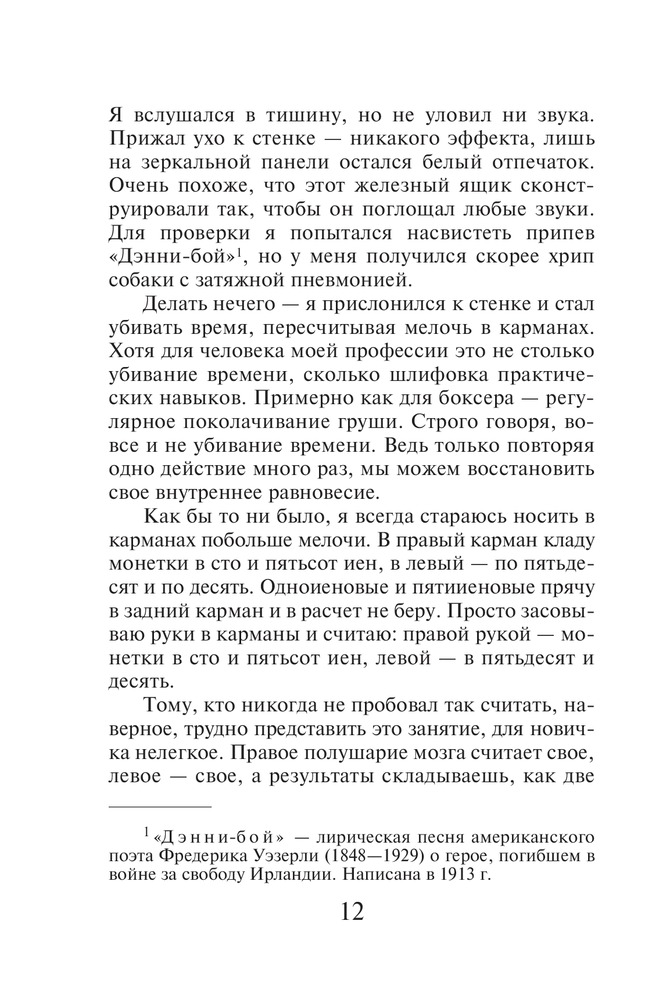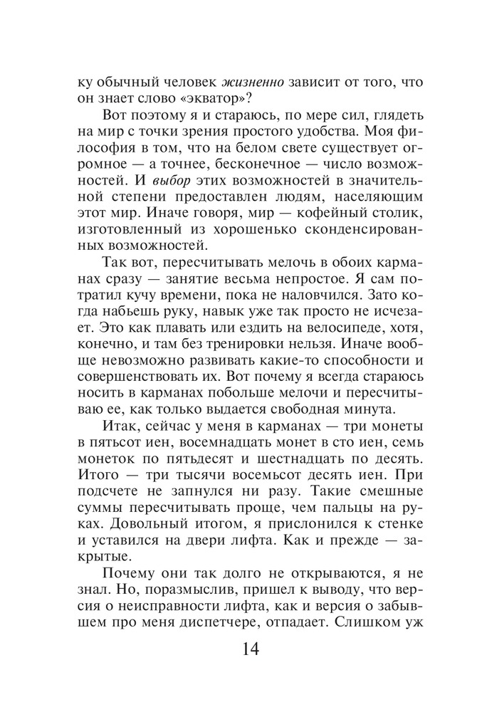 Книга интересная, но для меня, в книгах в Мураками не хватает скорости, события происходят слишком медленно, точнее описание событий, мыслей, чувств персонажа, под конец все внутренние монологи с описанием любимых песен и фильмов героя, я просто пропускала. Скорее всего, Мураками, просто не мой автор. А работа флипа, как всегда на высоте! Кстати, хотела купить эту книгу в Меломане, где она стоила почти 3000 тг, а тут в два раза дешевле.